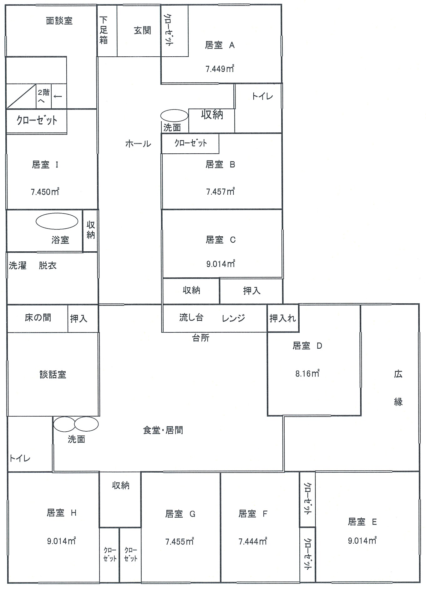 | 談話室、居間、台所、食堂、トイレ、風呂場は共用 | ||